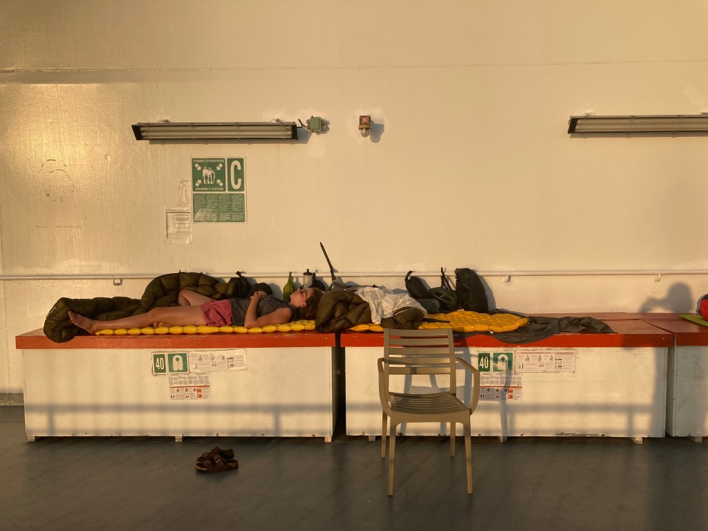 Wiebke und ich sitzen leider in unterschiedlichen Teilen des Flugzeugs. Wiebke sitzt neben Nura, nur wenige Reihen vom Abgeschobenen entfernt. Nura, eine Kirgisin, die in Deutschland eine Ausbildung macht, übersetzt für Wiebke. Sie unterhalten sich mehrere Stunden, und Wiebke lernt schon viel über Kirgistan kennen. Ich schlafe und schaue einen Film. Meine Sitznachbarn sind leider nicht so gesprächig. Wir haben einen Zwischenstopp in Istanbul.