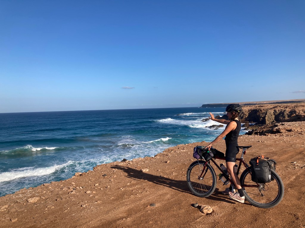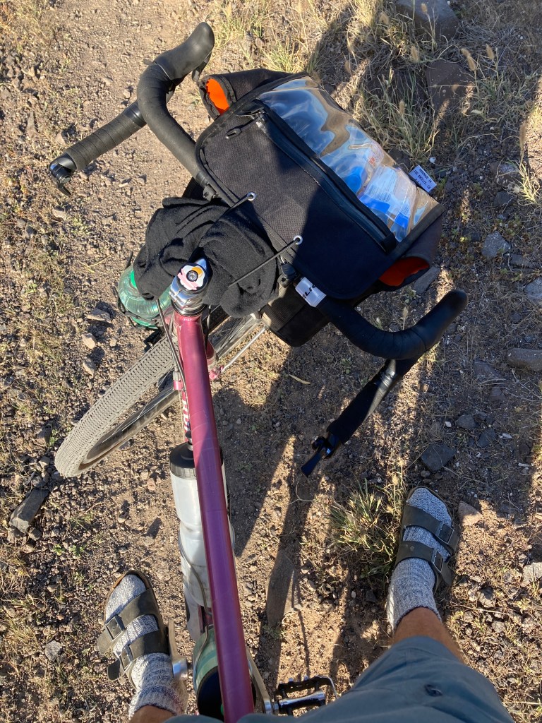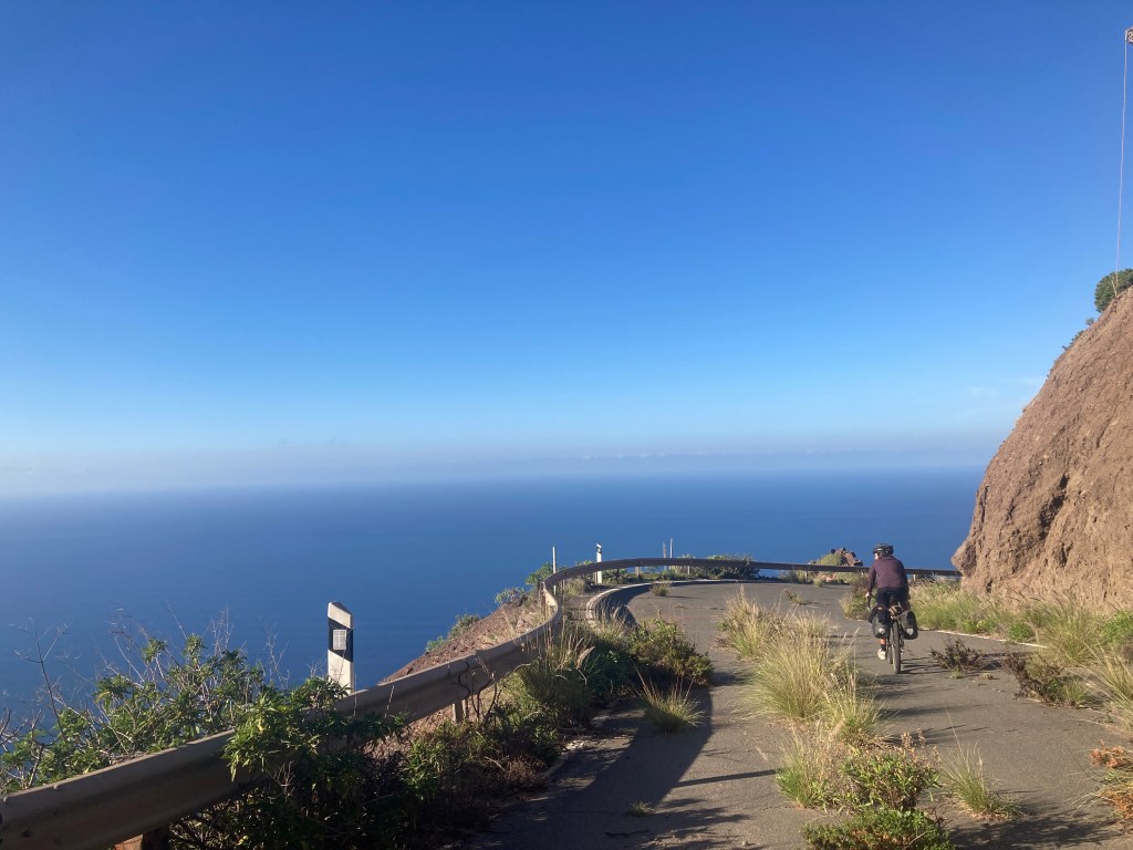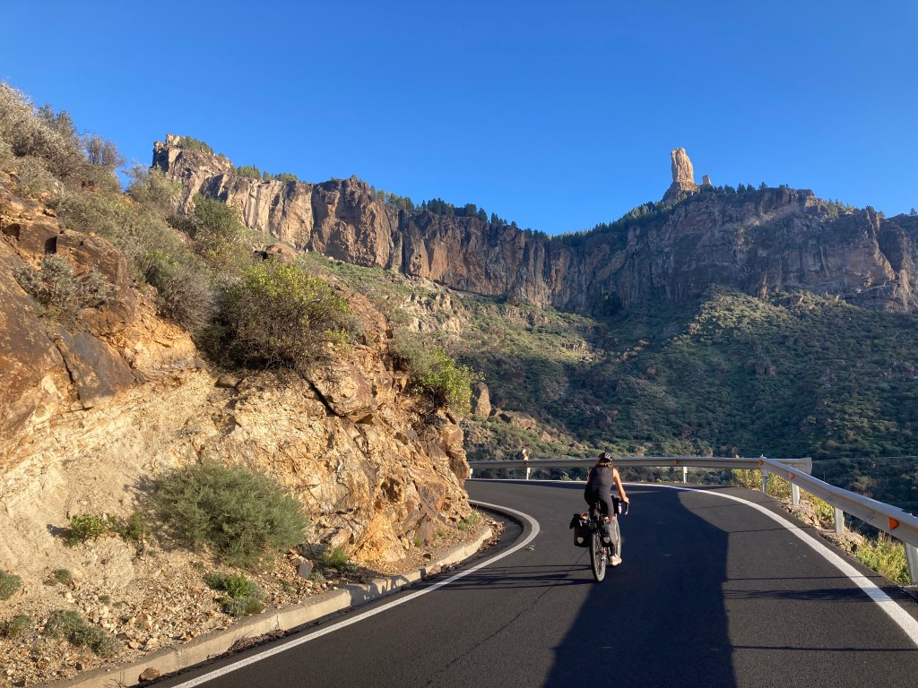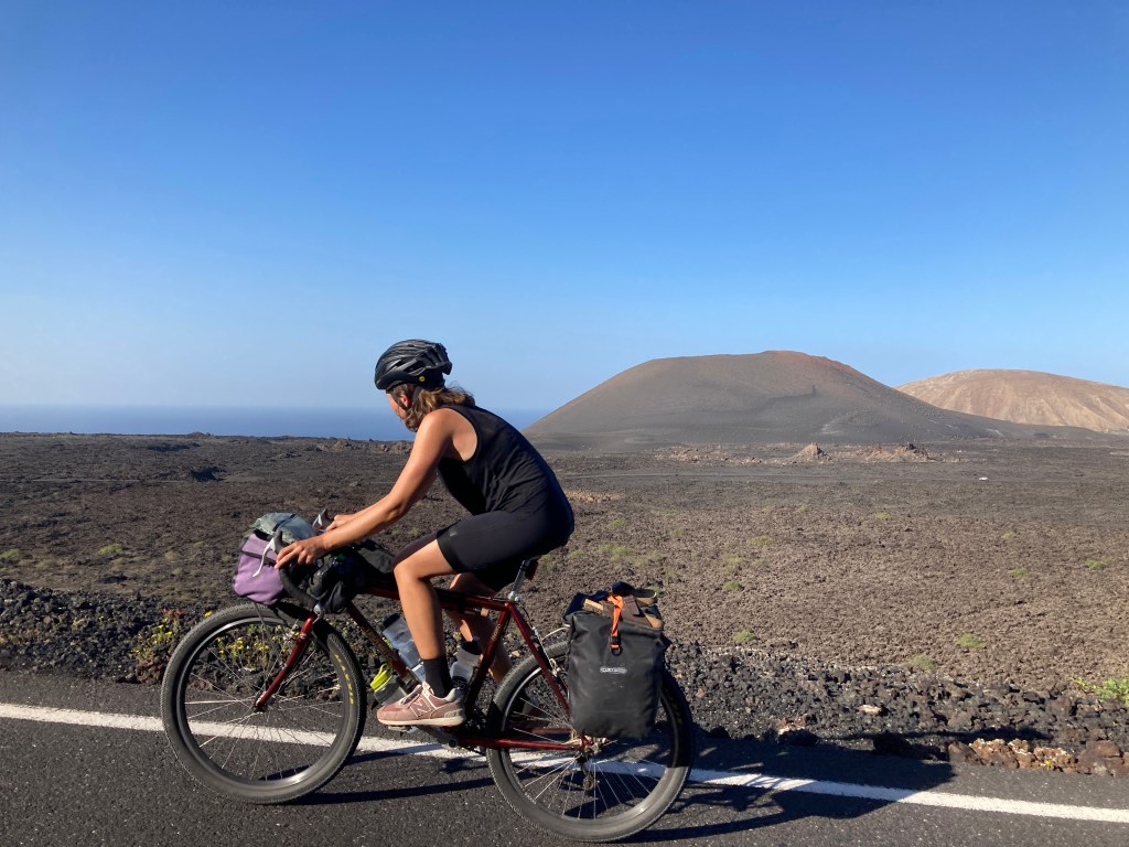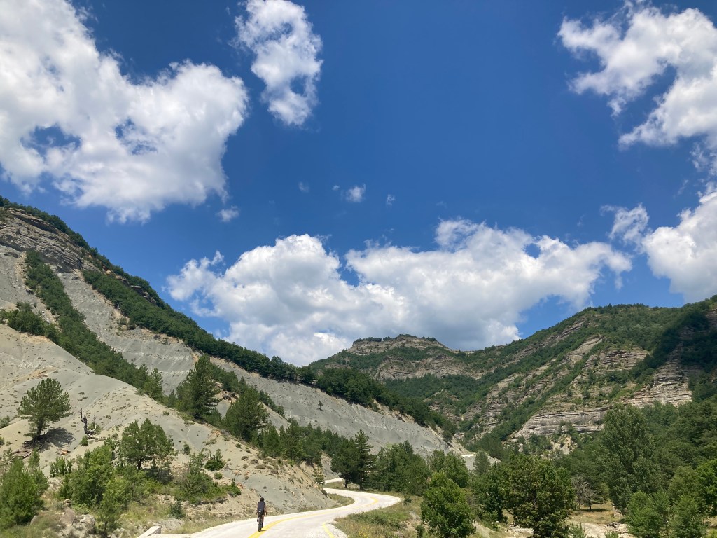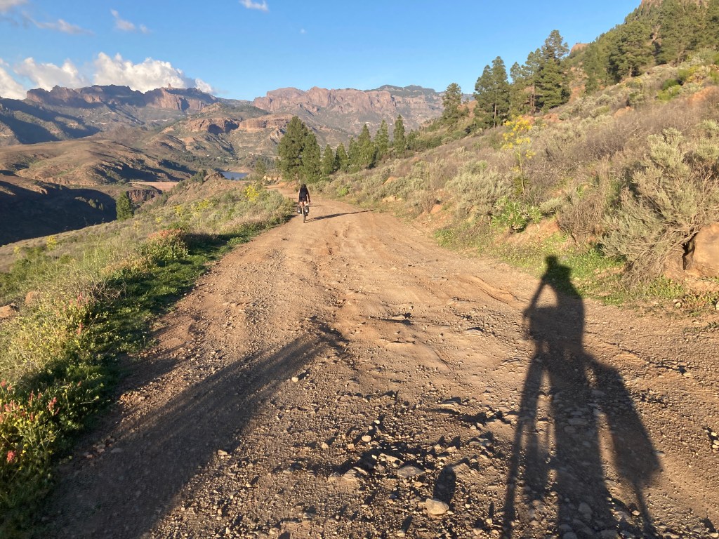 Es geht weiter bergab, doch davor tausche ich die Hörnchen an meinem Lenker noch mit Wiebkes Hörnchen – in der Hoffnung, dass sie ihre tauben Finger und schmerzenden Handgelenke in den Griff bekommt. Leider stellen sich ihre Hörnchen als nicht ergonomisch genug für ihr Problem heraus – da haben wir zuvor nicht ausreichend getestet. Es geht durch einen wunderbaren Canyon, wir fahren immer weiter hinunter und passieren dabei verschiedene Vegetationszonen. Unglaublich schön! Es ist beeindruckend, wie vielfältig die Landschaft auf unserer Reise bis zu diesem Punkt bereits ist. Unterwegs halten wir in zwei kleinen Ortschaften. Im ersten Ort, Kyzyl-Oi, trinken wir einen wässrigen Kaffee. In Kirchin Village machen wir Mittagspause. Es gibt frisch gebackenes Fladenbrot, leckeren Saft, Snickers und Nüsse. Das kleine Geschäft mit seinem bunten Blumengarten taucht einfach wie aus dem Nichts am Straßenrand auf. Später gelangen wir auf eine Asphaltstraße, die uns Richtung Osten zum Songköl bringen soll. Nach drei Tagen auf Schotterpisten pumpe ich unsere Reifen auf, damit die bevorstehenden 60 km auf Asphalt zügiger vergehen. In der nächsten größeren Stadt, Chaek, treffen wir weitere Radreisende. Dann die große Überraschung: Ich erspähe das Fahrrad meines Freundes Marin! Marin ist mit dem Rad auf dem Weg zum Start des Silkroad-Rennens – wohlgemerkt auf dem Landweg. Ich wusste von seinem Plan, hätte aber nie geglaubt, ihn zufällig zu treffen. Wir kennen uns vom Transcontinental- und Transpyrenees-Race vor ein paar Jahren. Das Wiedersehen ist rührend. Marin hat keinen Stress und entscheidet spontan, uns in die Richtung zu begleiten, aus der er gerade gekommen ist, um den Abend mit uns zu verbringen. Kurz vor der Abzweigung von der Hauptstraße in Kuyruchuk laden wir noch einmal unsere Räder mit Wasser und Lebensmitteln auf und biegen dann auf eine Schotterpiste ab – Richtung Süden, Richtung Berge, Richtung Songköl. Beim Überqueren einer Hochebene flüchten wir mit Vollgas vor einem Gewitter, während Marin mir erzählt, wie das Long-Distance-Racing immer professioneller wird und mittlerweile jeder Topfahrer und jede Topfahrerin mit einem Coach und einem strukturierten Trainingsplan arbeitet. Wiebke hält tapfer durch und bleibt an unseren Hinterrädern. Wir flüchten in einen Canyon und suchen dort, direkt an einem kleinen Wasserlauf, einen schönen Lagerplatz neben der Straße. Es gibt Pasta, Chips und Fisch aus der Dose. Wir reden lange, bevor wir schließlich in unseren Zelten in einen wohlverdienten Schlaf fallen.