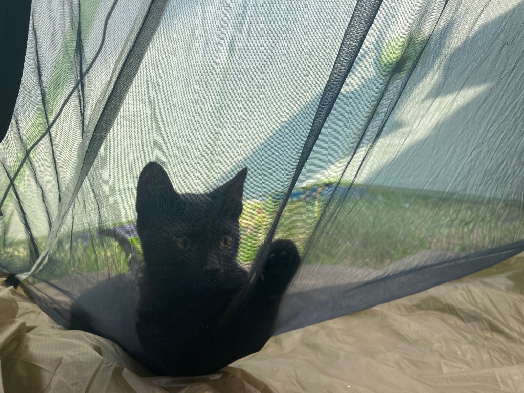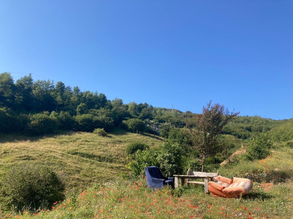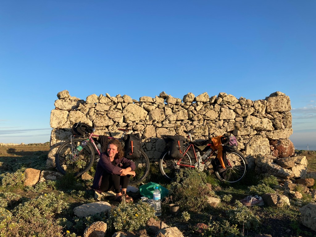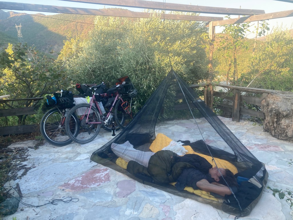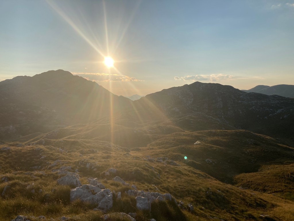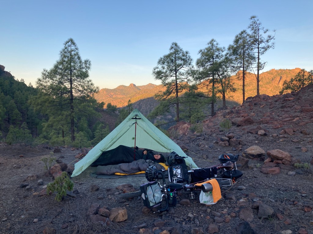 Nach dem wir unser Essen aufgegessen haben fahren wir etwas vom Dorf weg und bauen mit idyllischen Ausblick unser Zelt auf.