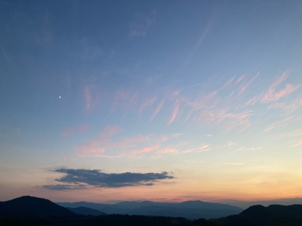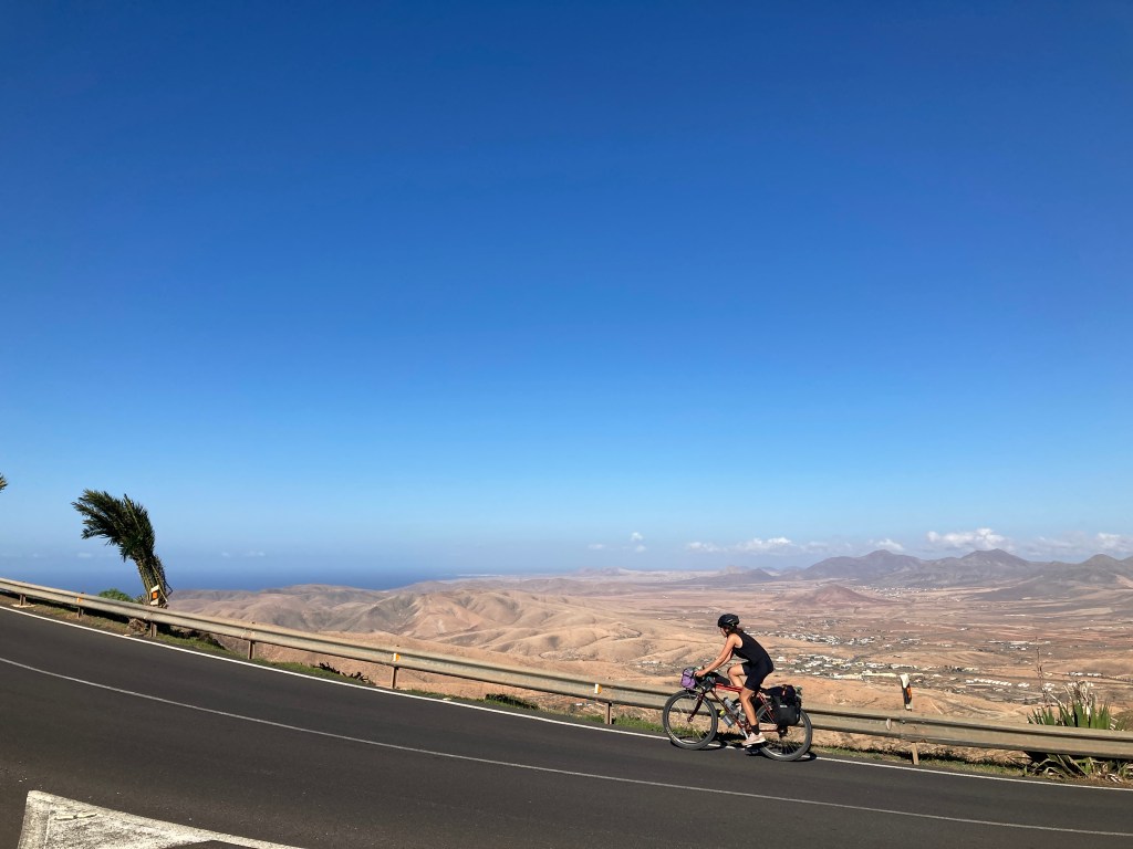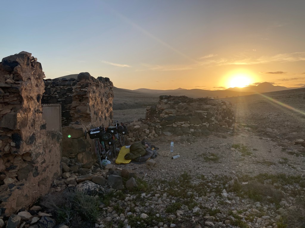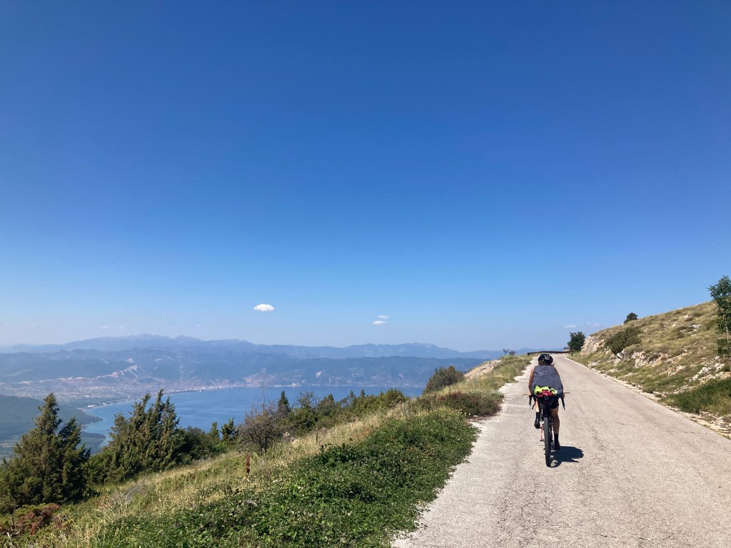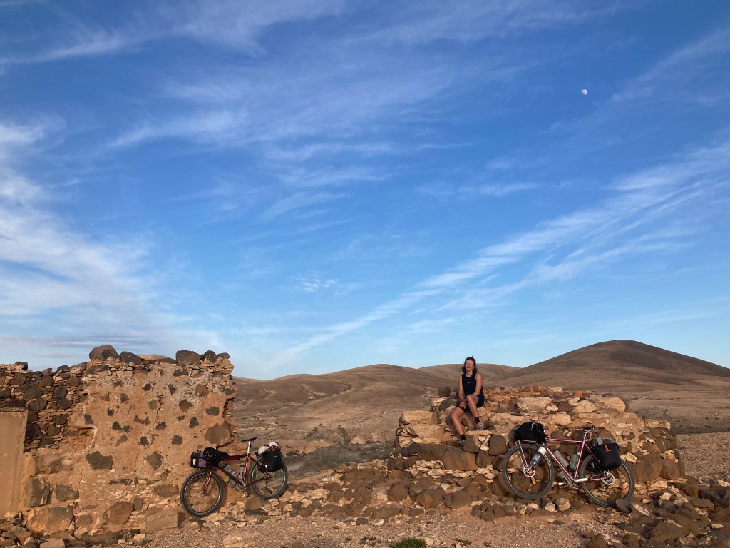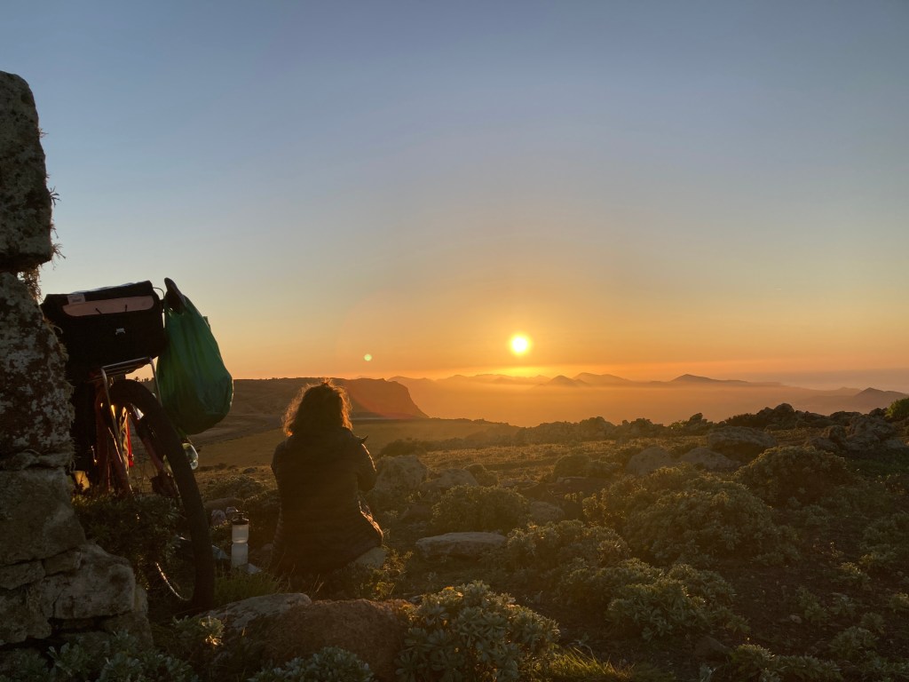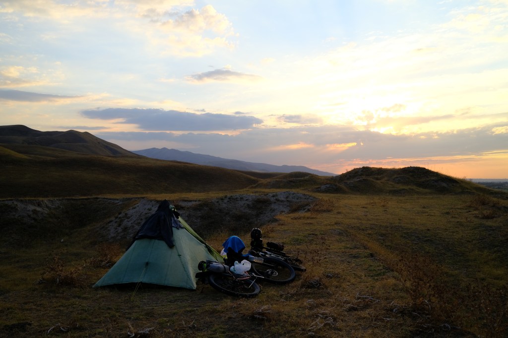 Bei herrlichem Wetter und gestärkt von einem reichhaltigen Frühstück starten wir in Richtung Bischkek. Wir nehmen nicht den direkten Weg, sondern fahren über kleine Dörfer auf einsamen Straßen. Außerdem wollen wir noch vor den Toren der Stadt die letzte Nacht im Zelt genießen. Landschaftlich gibt es keine großen Highlights mehr, aber es ist schön, noch einmal einen Tag durch eine etwas dichter besiedelte Region Kirgistans zu fahren. So viele Menschen wie heute haben wir auf der gesamten Reise zuvor vermutlich nicht getroffen. In jedem Dorf, in dem wir anhalten – sei es für ein Eis, eine Rast im Schatten, das Mittagessen oder eine Melone –, kommen Männer auf mich zu und wollen meine Hand schütteln. Für Wiebke interessiert sich heute leider niemand, dabei hat sie in den letzten Wochen eine viel größere Leistung vollbracht als ich. So ist es leider in Muslimischen Ländern, das haben wir so auch schon auf anderen Reisen erlebt. Am Ende des Tages fahren wir wieder durch das Dorf Kegeti, genau wie am ersten Tag unserer Reise. Ab hier treffen wir mehrere Gruppen von Radfahrern, alle auf dem Weg zum Kegeti-Pass. Wir freuen uns, dass auch andere bald erleben dürfen, was wir erleben durften. Kurz vor der Stadt finden wir auf einer Anhöhe einen wunderbaren letzten Campspot und genießen unseren letzten Sonnenuntergang. Am Horizont ist bereits die „Skyline“ von Bischkek zu sehen.