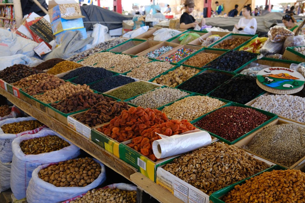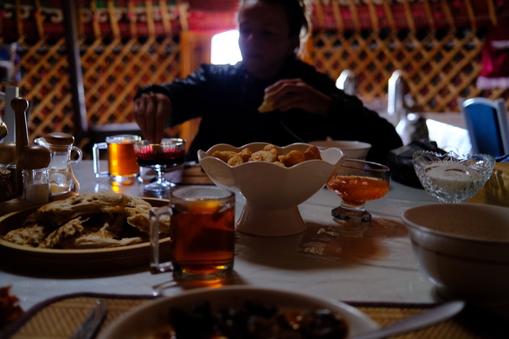Heute wird ausgeschlafen und entspannt. Am späten Vormittag gehen wir in ein Café essen. Dort treffen wir auf zwei deutsche Frauen und einen Engländer mit Fahrrädern. Wir verbringen schlussendlich mehrere Stunden und mehrere Mahlzeiten dort gemeinsam und tauschen uns aus. Es ist eine schöne Abwechslung, ein paar Stunden in europäischer Gesellschaft zu verbringen. Später besuchen wir noch den Bazar. Wir testen Kurut (salzige, getrocknete Quarkkugeln) und versorgen uns für die kommenden Tage. Außerdem machen wir einen groben Plan, wie wir weiterfahren werden. Das Wetter für die nächsten Tage ist leider ziemlich unbeständig. Wiebke freut sich sehr über den Ruhetag, ich muss zugeben, dass ich immer etwas Überwindung brauche, um eine Pause zu genießen. Ich würde am liebsten immer weiterfahren, freue mich aber schlussendlich trotzdem sehr über den Tag, die Begegnungen und unseren Besuch auf dem Basar.